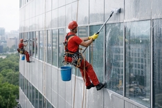 Проводим мытьё окон, витражей и элементов наружного остекления зданий любой высоты и степени загрязнения, вне зависимости от времени года методом промышленного альпинизма.