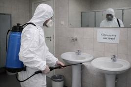 Санитарно-гигиеническая обработка туалетов с удалением загрязнений с сантехники.
