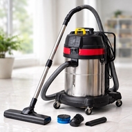 Уборка пыли при помощи промышленного пылесоса.